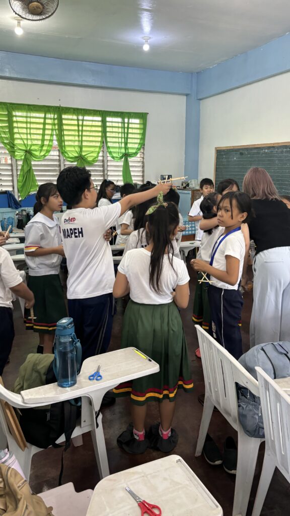 そして、みんなで一生懸命準備した初めての授業実践の日。子どもたちが私たちのアクティビティに目を輝かせながら参加してくれているのが伝わってきて、その姿を見た瞬間、胸がぎゅっと熱くなりました。活動で使った材料を「これ余ったら持って帰ってもいい?」と聞いてくる子もいて、自分の関わりがこんなふうに誰かの楽しさにつながることに、これまでにないやりがいを感じました